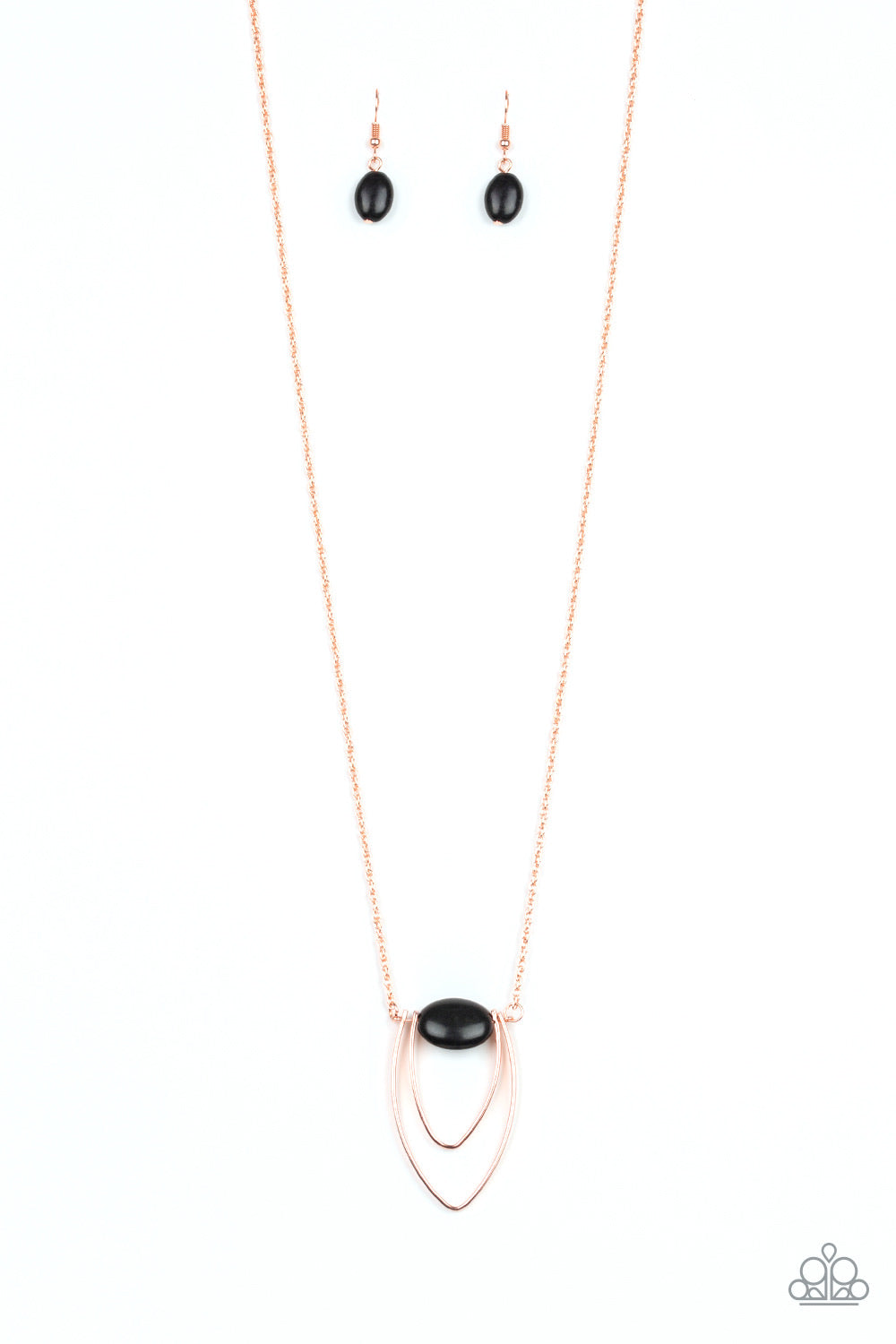 k stone gives way to angular shiny copper frames at the bottom of a shiny copper chain for a seasonal flair. Features an adjustable clasp closure.